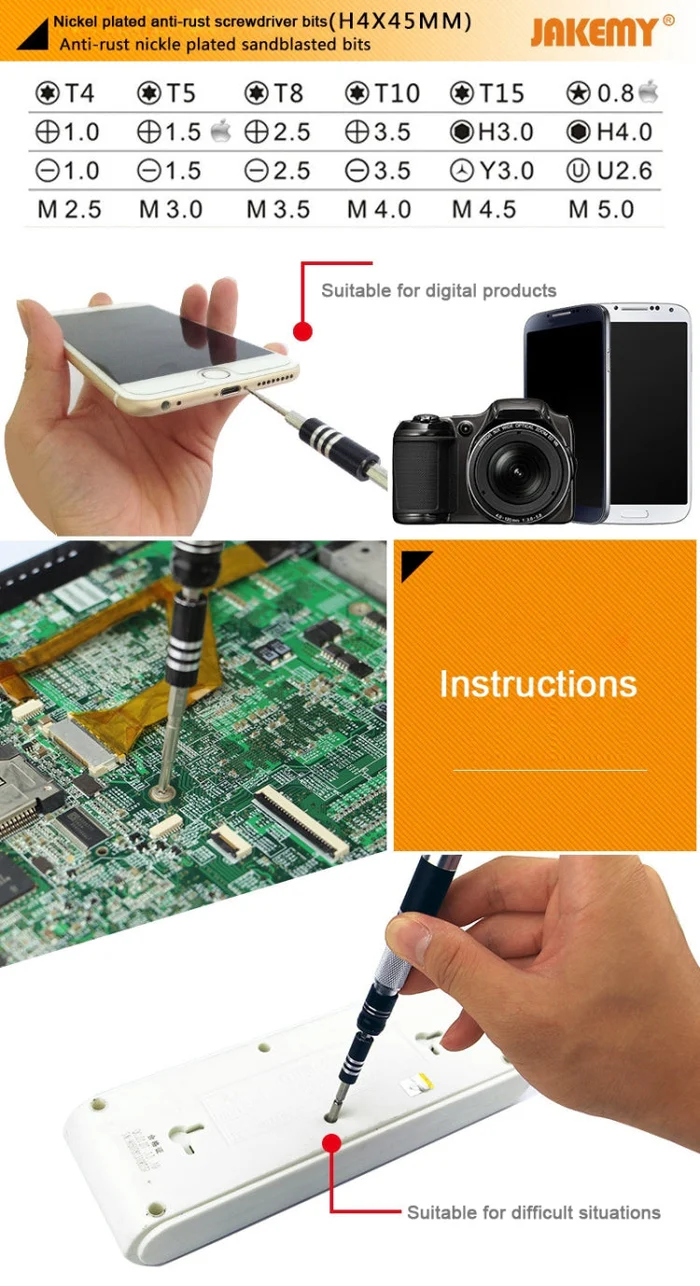 - JAKEMY JM-8142 30 in 1 Aviation Aluminum Interchangeable Screwdriver Set